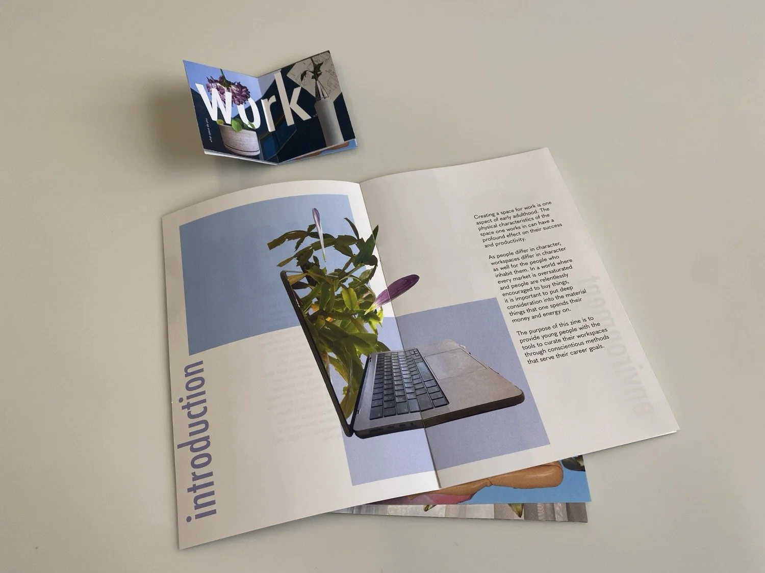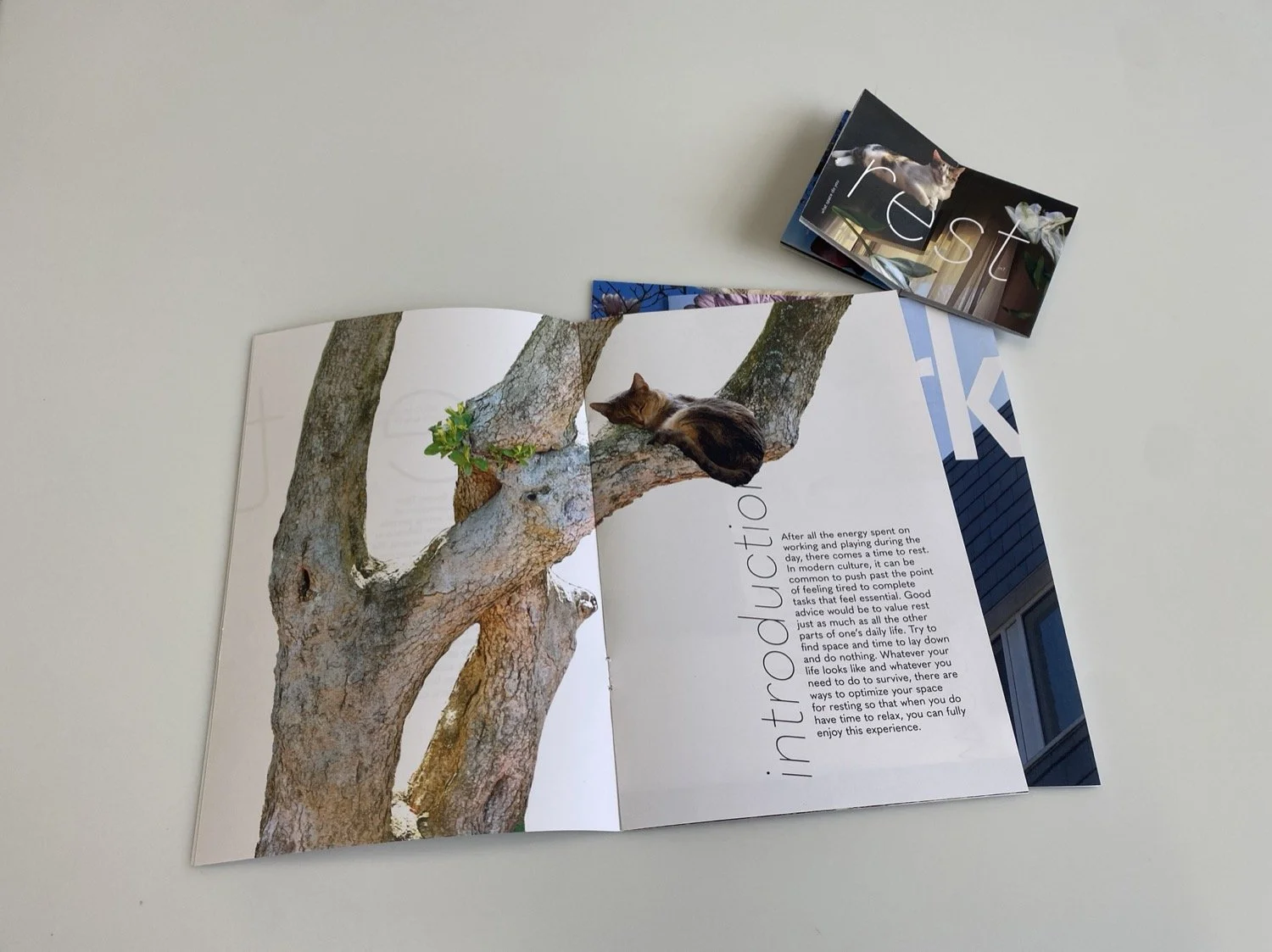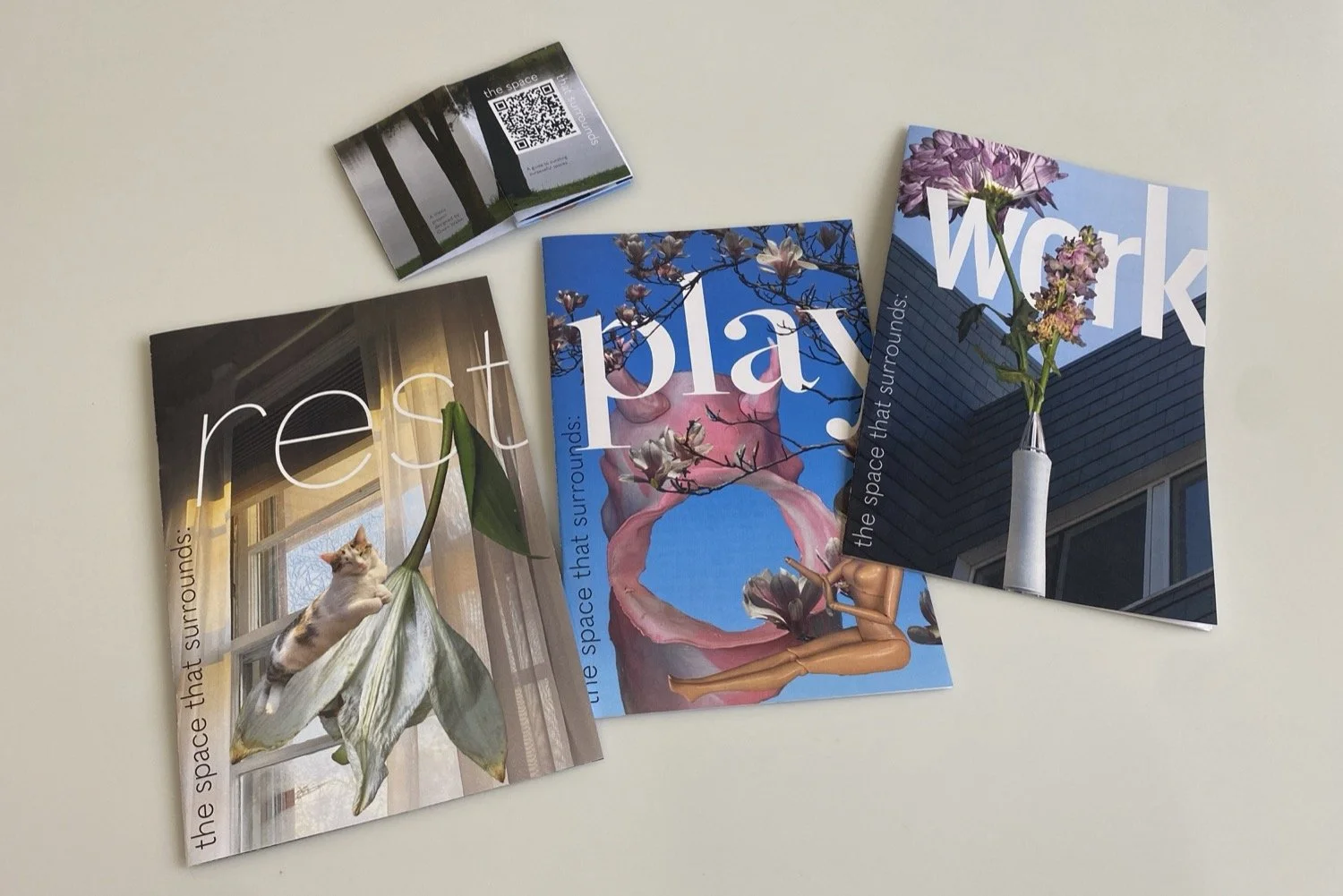 Drawing on interior design, Feng Shui, and personal observation, the project shows how environments affect people and how thoughtful changes can create more supportive spaces. The zines use my personal photography, collage, and nature-inspired typography to reflect learning from the physical environment.